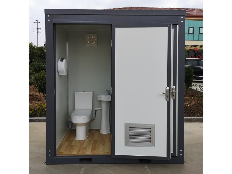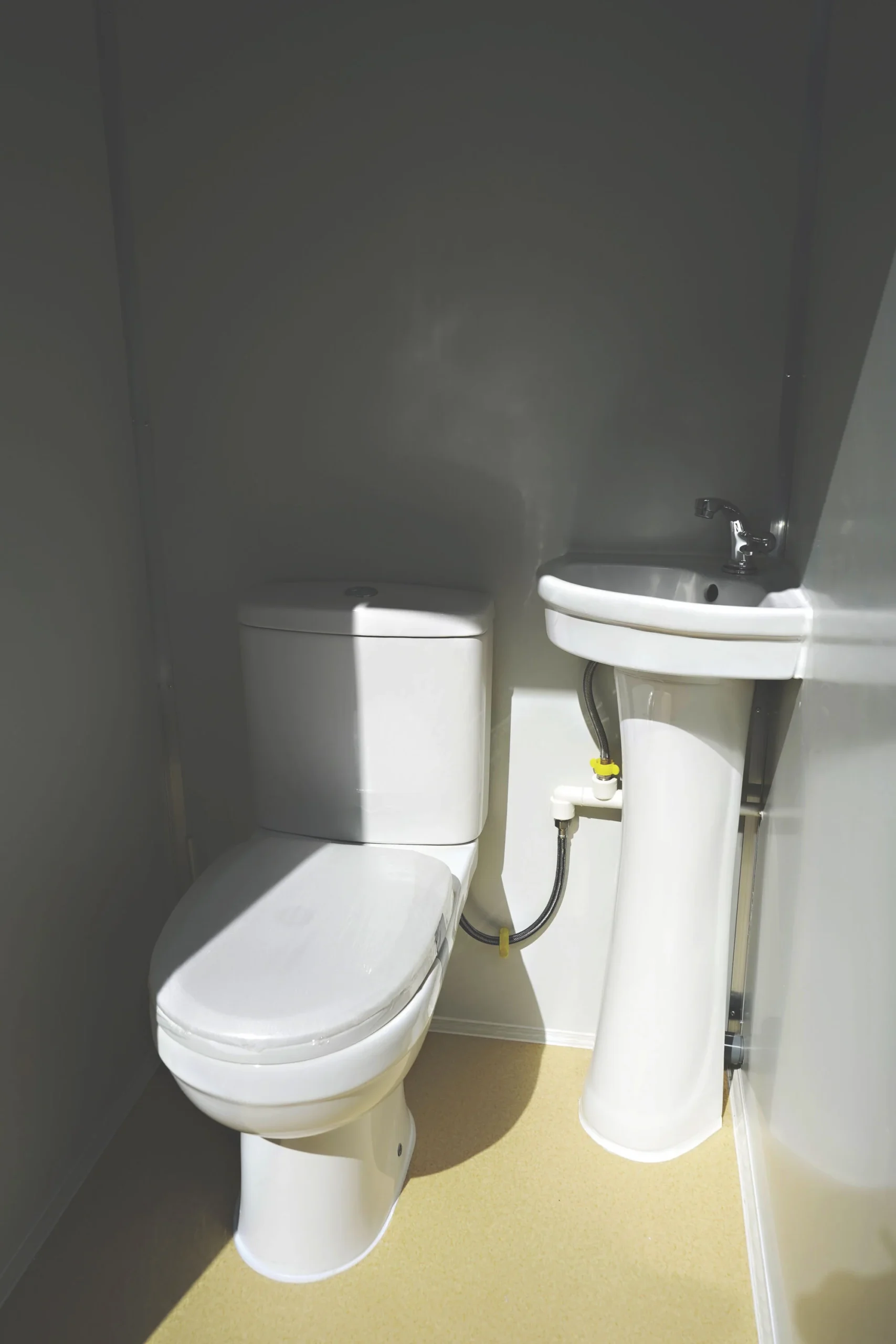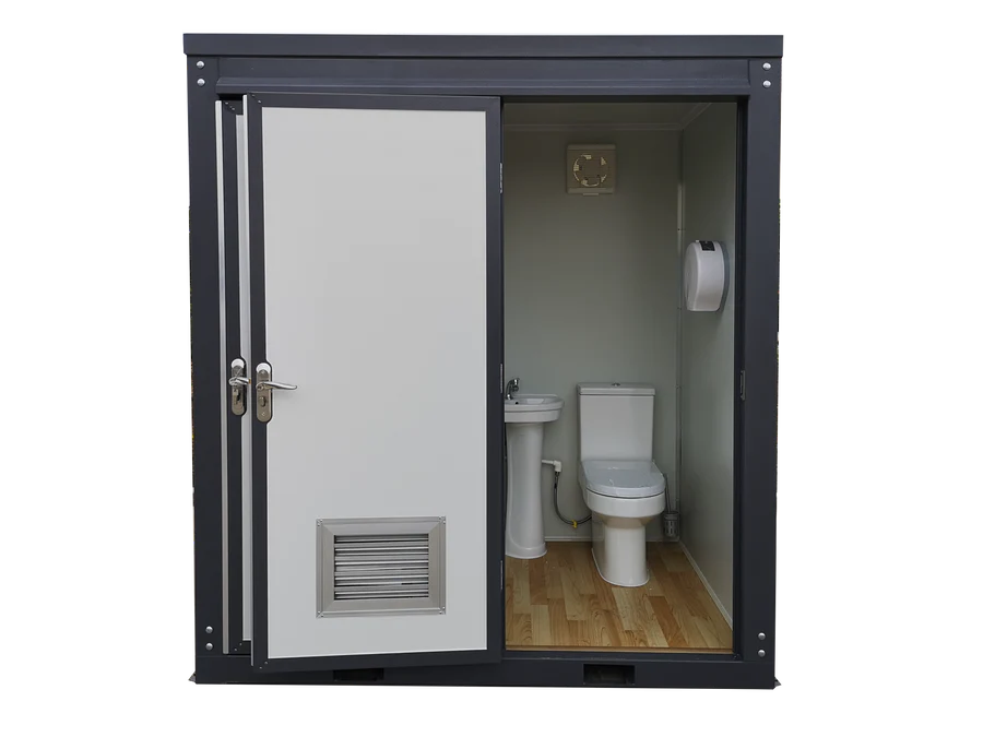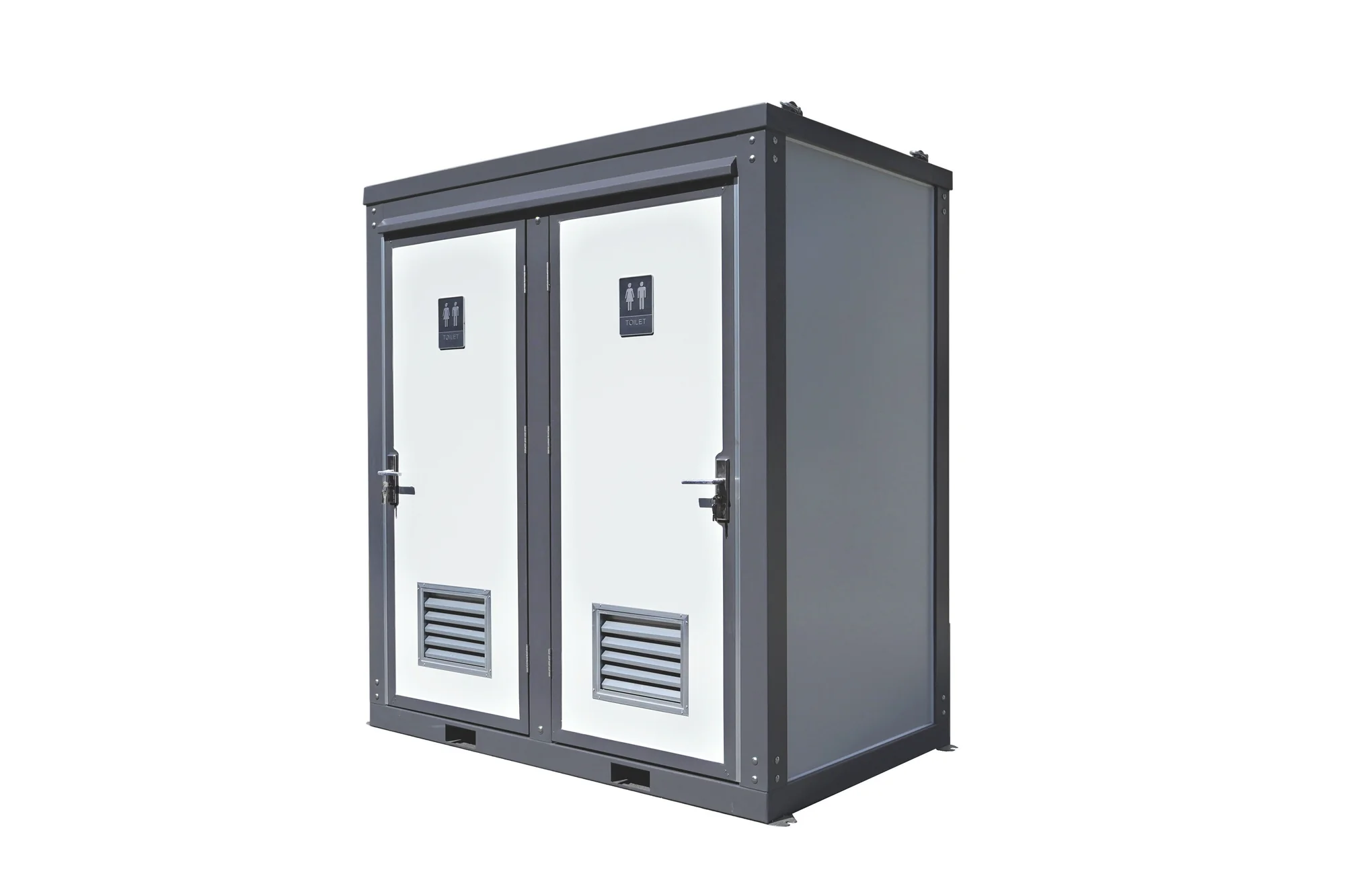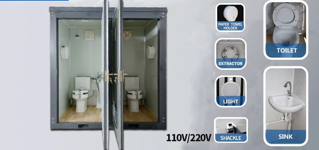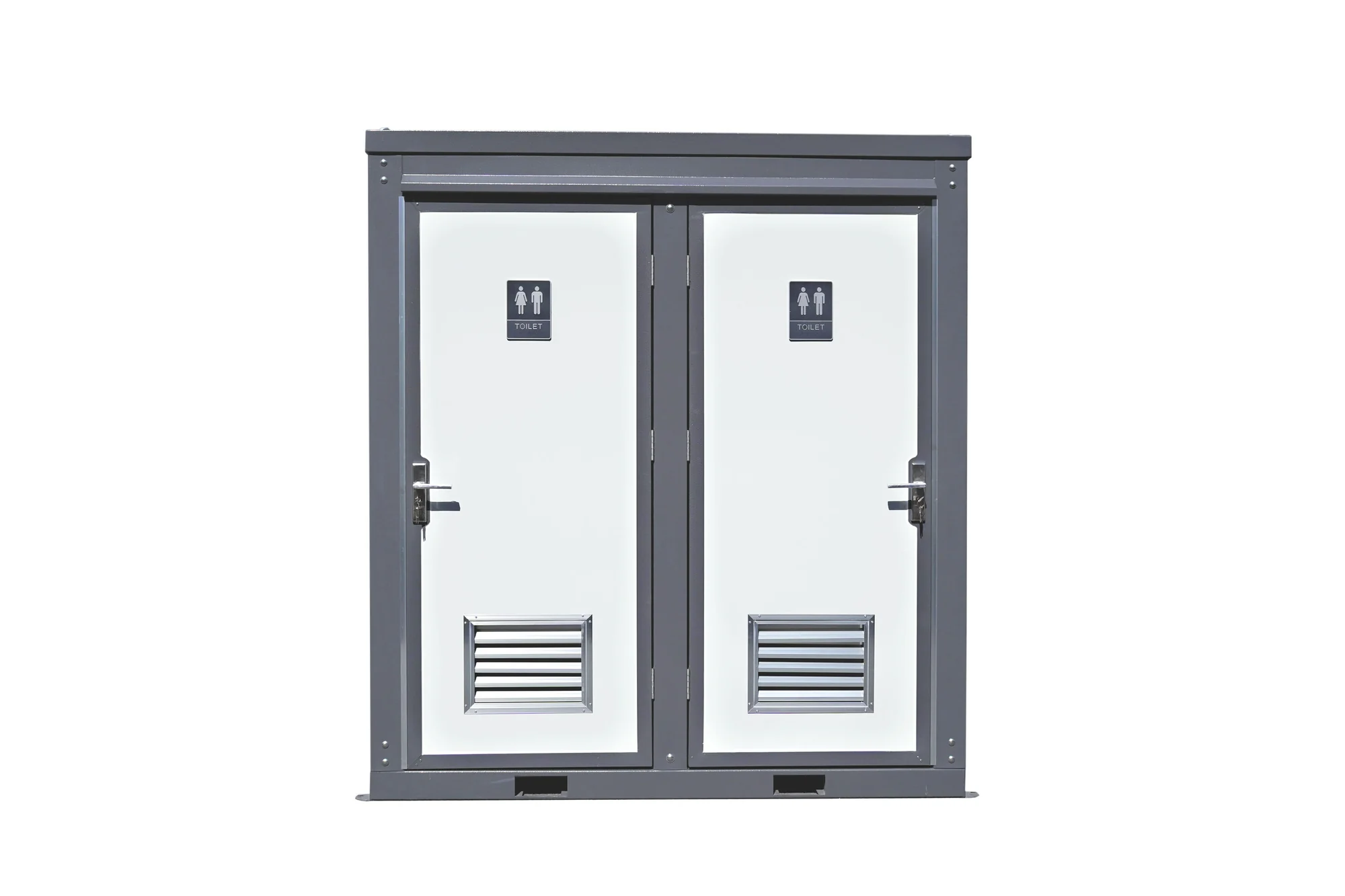 Cette toilette portable 2 cabines privées est utilisée sur un chantier de construction, nous vous recommandons de raccorder les toilettes au système d’égout sanitaire et de raccorder l’eau au système de canalisation. Sinon, vous aurez peut-être besoin de réservoirs à l’extérieur de la structure pour les déchets.
