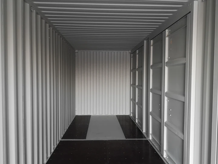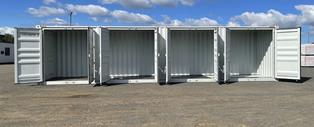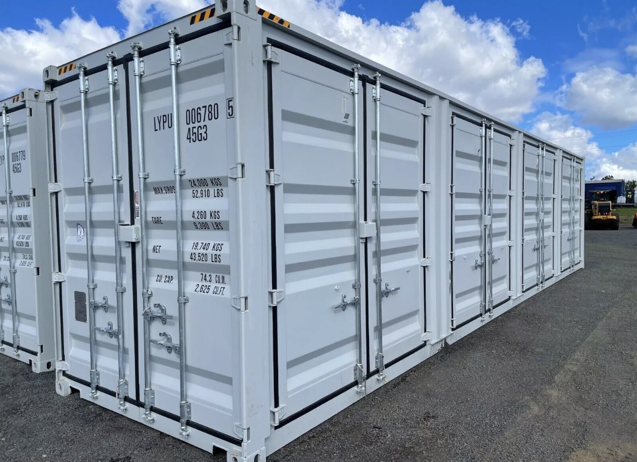 Le conteneur 40 pieds high cube avec portes latérales comprennent 4 portes OEM sur la longueur du côté droit pour des applications d’entreposage polyvalentes. Cette configuration de conteneur spécialisée fournit un accès latéral sécurisé et comprend un boîtier de verrouillage sur chaque ensemble de portes pour une sécurité supplémentaire. Les portes latérales OEM organisent ce conteneur à un voyage dans des compartiments qui peuvent être accessibles séparément pour le mini entreposage ou d’autres applications d’entreposage similaires.