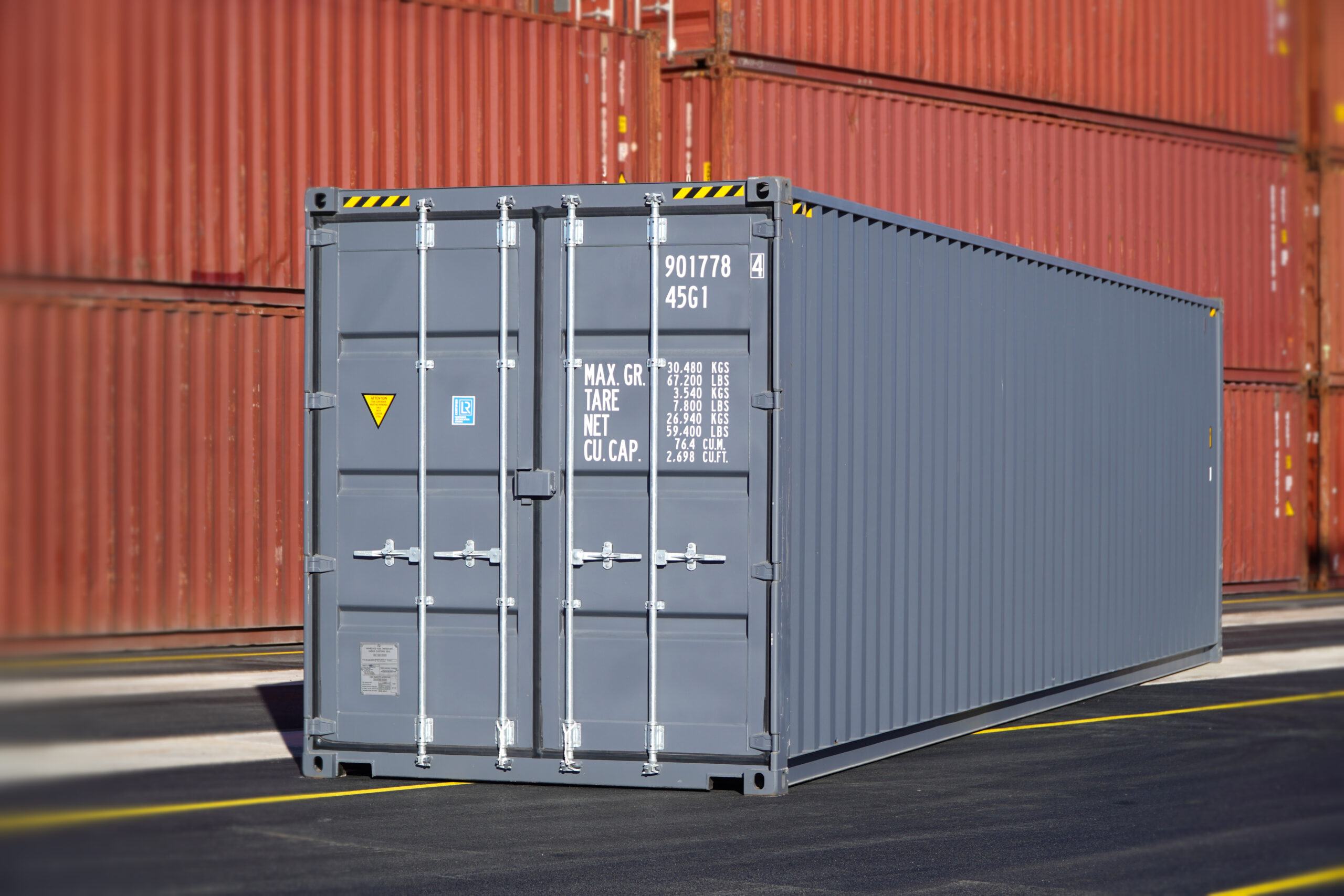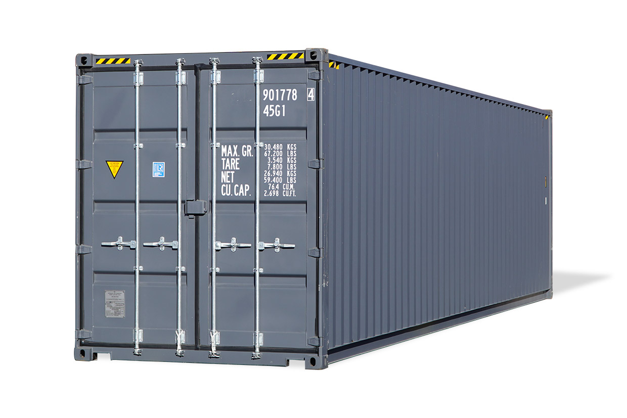 Le container 40 pi high cube est de 1 pied plus haut que les conteneurs d’expédition de dimensions standard. Il est conçu pour répondre aux besoins d’entreposage ou de transport d’articles surdimensionnés qui n’entreraient pas dans des conteneurs de hauteur standard. Les conteneurs maritimes de 40 pi high cube sont équipés de quatre (4) évents à l’épreuve des intempéries pour assurer l’aération dans tout le conteneur, de poignées de porte à barre de verrouillage de 36 po de hauteur qui facilitent l’accès, de passages de fourche offrant une manutention supérieure et d’un boîtier de verrouillage sécurisé pour un maximum de sûreté.